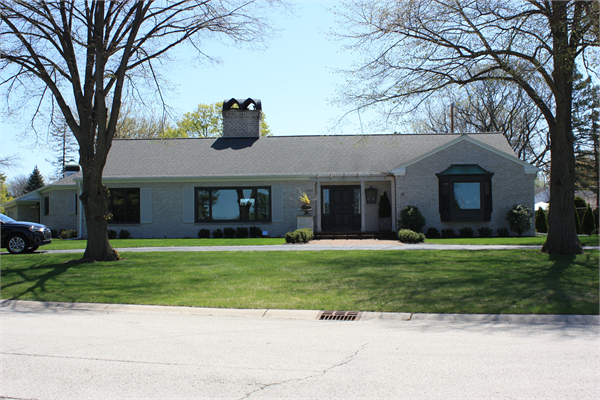| Additional Information: | A 'site file' titled "Sunset Circle Residential Historic District" exists for this property. It contains additional information such as correspondence, newspaper clippings, or historical information. It is a public record and may be viewed in person at the Wisconsin Historical Society, State Historic Preservation Office. 2023 Although the Village of Allouez assessor data lists the construction date for 645 Sunset Circle as 1958, the building permit for new construction indicates construction was begun by contractor Fabian Redmond in 1961. Aerial imagery also confirms the house was not yet constructed in 1960. Based on the Green Bay City Directory, the house was completed in 1962. The Dr. Glen F. and Thelma L. Denys House is a one-story single-family ranch type dwelling featuring influences of the Colonial Revival style such as quoins, entrance sidelights, corbelled cornice, and eave returns. The side-gabled house is situated on an angled lot with an L-shaped plan consisting of the northwest facing living space and the north facing attached garage. Per the building permit, the exterior is clad in white glazed antique provincial brick veneer. The same material is used to create a quoin effect at the corners and a corbelled string course reminiscent of a column capital below a flat frieze trim in the eaves. The flat frieze trim was installed after 2013 and replaced the original dentil frieze. From the side-gabled roof, an internal brick chimney with pointed arch masonry cap rises from the ridge of the living spaces and a squared cupola rises from the ridge of the attached garage. The main entrance is slightly recessed into the house and is offset by a prominent front-gable with a bay window. The principal elevation (northwest) also features a large picture window, and two banks of three windows are at the northwest corner of the living space. Since 2013, the original multi-lite, white painted wood sash windows were replaced with black steel or vinyl sash windows that differ in lite configuration and functionality. Within the same time frame, the wrought iron at the main entrance was replaced with a wood pergola. |