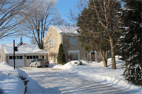 Additional Information: | A 'site file' titled "Sunset Circle Residential Historic District" exists for this property. It contains additional information such as correspondence, newspaper clippings, or historical information. It is a public record and may be viewed in person at the Wisconsin Historical Society, State Historic Preservation Office. 2023 The Elroy and Bernice Van Oss House was constructed in 1940 . That year the house was featured in the Green Bay Press-Gazette as a “handsome Colonial Home” and the first to be constructed on Sunset Circle. It is a two-story Colonial Revival single-family dwelling with a one-story, front-facing attached garage. The exterior is entirely clad in stone veneer. The side-gabled roof has narrow eaves that are delineated by a dentil cornice and the gable ends feature eave returns. The principal elevation is symmetrical with a centered entrance accentuated by a semi-circular dentil pediment and squared pilasters. Two large, 30-lite windows are centered adjacent to the entrance and feature dentil surrounds. The windows are otherwise six-over-six and eight-over-eight hung wood sash windows and feature stone sills. Semi-circular attic windows are centered in the gable ends. Rounded bay windows extend from the west (side) and south (rear) elevations, and a one-story glazed sunroom extends from the west end of the rear elevation. The garage and house are adjoined by a small hyphen with a secondary entrance. |