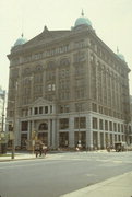 Originally housed the Germania Publishing Company, George Brumder's German language publishing empire. The firm was founded in 1873 to accomodate the needs and demands of Milwaukee's large German population for books, newspapers, and magazines in their own language. Publications such as Germania, a nationally known weekly, Deutsche Volksblatt, and Hausfreund flourished under the direction of George Brumder and editor George Koeppen. The Germania Company also published several German-language Lutheran publications, including hymnals and textbooks, and Germeinde-Blatt, the official organ of the Wisconsin Lutheran Synod. Because of anti-German feeling resulting from World War I, the Germania Building was re-named for its owner. The German language press declined in the 1920s, and by the 1940s the Brumder estate had sold the building. Since then it has served as an office building. Although the exterior has undergone few changes, the interior has suffered from a series of low budget renovations and stopgap repairs. In the Milwaukee Journal of Jan. 14, 1979, Milwaukee architect Paul Gurda eloquently advocated the restoration and adaptive use of the Brumder Building. He also noted the urban design potential of the triangle which is formed by Plankington Ave., Wells and Second Streets and which is dominated by the Brumder Building.