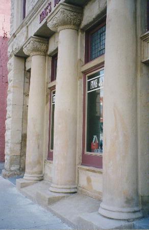 | Additional Information: | Large projecting cornice with classical trim and cut-stone frieze; round arched windows with stone surrounds; three columns "in-antis" with Romanesque capitals of intricate leaf pattern ornament the store front brick rear and side elevations. RUSTICATED STONE, ARCHED WINDOWS. [Date Cnst:(PLAQUE)]. Originally constructed in 1873 and enlarged in the Italianate style in 1888 (A)(B), the facade of the First National Bank was remodeled using random coursed sandstone to create the appearance of the massive Richardsonian Romanesque style in 1898. Characterized by sandstone columns with Romanesque capitals composed of stylized leaf and facial forms that extend across the lower facade, the facade is further ornamented by Romanesque round arched windows encased in stone mouldings and a plain cornice. The First National bank is architecturally significant as the best extant example in Chippewa Falls of the influence of the Romanesque Revival. The First National bank received a charter to commence banking operations in 1873. A brick bank building was erected the same year. Original officers of the bank were Chippewa Falls businessman Thomas Hulbert, and H.S. Allen (A). In 1887 a rear addition for coal sheds was built (B). In 1888 the bank was enlarged to two stories including operations on the first floor and office space on the second floor. Chippewa Falls resident Judge R.D. Marshall, later a Wisconsin Supreme Court Justice, housed his offices on this floor between 1884-1889 (C). Extensive remodeling was accomplished in 1898, giving the bank its present exterior appearance. Exterior alterations included a new sandstone facing with columns. This bank building is historically important to the City of Chippewa Falls as the best preserved representative of the city's nineteenth century banking operations. |