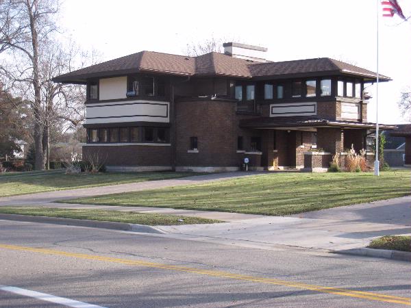 | Additional Information: | Two-story brick and stucco Prairie School house with broad roof overhang, window band placed directly under overhang, stucco panels with brown trim separating upper and lower stories, porte cochere on west side with second story enclosed porch, one-story screened porch on east side, window bands on upper and lower story, brick piers breaking strong horizontal lines of design, and entrance on east side of north wing.