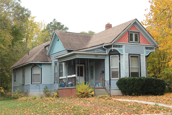 | Additional Information: | Late Picturesque one and one-half story cottage with Stick details including vertical members, horizontal bands of flush boards, decorative shingling in the gable and elaborate bracketing supporting the eaves over the chamfered front bay. Porchpillars are altered. See also 723 Lincoln. |