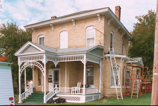 Additional Information: | Wide eaves with brackets; segmental arch windows; bay windows with brackets; vestibule with overlight above entrance; wrap-around front porch with elaborate spindle frieze, brackets, turned posts, wood rail, and shingling. Related building: carriage house - two story frame building sided with vertical boards (50/36). |