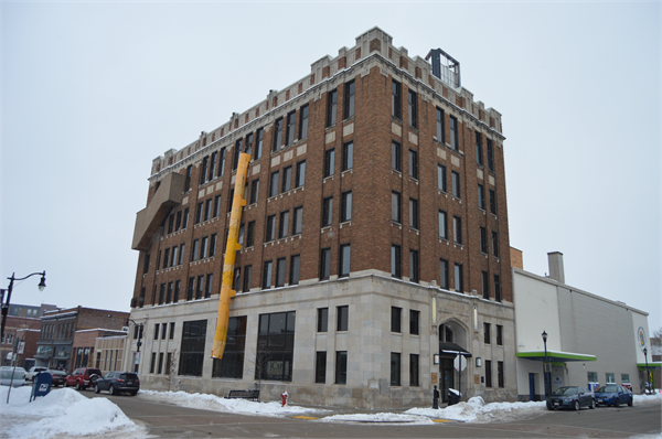 | Additional Information: | Constructed in 1930, the Scandinavian American Fraternity Building is a prominent feature of Eau Claire's central business district. Rising six stories, the structure features dressed stone walls on the ground level and first floor and brick walls above. Stone is once again used to accent the crenelated parapet. The main entrance (on E. Grand Avenue) is framed by a two story Tudor arch and four rectangular openings. Above this area the windows are paired and arranged in three groups which are separated by piers. On the west elevation the windows are grouped in twos and threes. (Note: All of the windows are modern.) Of special interest are the stone faces in the sculpture block beneath the roofline. "The Scandinavian American Fraternity was organized as the Norden Lodge in 1889 as a branch of the Scandinavian Workingmen's Association in Chicago. They seceded from the Chicago order in 1893 and by 1918 had 700 members and a Ladies Auxiliary of 400 members" (B). The association changed their name to the Scandinavian American Fraternity in 1916 and in 1930 erected the six story office building. Until 1931, the structure housed the merged State Bank of Eau Claire and the Eau Claire National Bank, a firm which fell victim to the economic difficulties of the Depression era. The American National Bank and Trust Company, organized in October, 1932, by Richard Lewis, Sr., E.M. Peterson, Ole Harstad, and W.A. Kaiser, replaced the Eau Claire concern (C). 1997-Sided and altered windows. (2015) The Scandinavian American Fraternity Building a prominent feature of downtown Eau Claire. The six-story building is clad with dressed stone on the first and second floors and brick above. The building is organized into three bays on the south and north elevations and six bays on the west, each bay separated by brick pilasters. Each bay on the south and north façades feature pairs of two windows. The central four bays on the west façade each feature three windows with one or two window in each end bay. Almost all of the building’s windows were replaced with fixed metal windows in 1997, including two-story sections of vision and spandrel glass curtain wall systems at the first and second floor levels comprising the entirety of three bays on the west façade. A non-historic projecting, enclosed, stucco-clad staircase addition is suspended from the exterior of the north end of the west façade spanning between the top two floors. Panels of basketweave brickwork separate windows between each floor level, with carved stone accent panels instead separating the windows between the upper two floors. The main entrance located in the center bay on the south façade is housed within a recessed two-story Tudor arch flanked on each side by simple stone pilasters, the top of which feature carved relief sculptures of human faces. An entrance in the northernmost bay on the west façade is located in a recessed rectangular opening with similar pilasters. The entire building is crowned with a brick and stone crenelated parapet above an elaborate stone cornice with carved relief sculptures at the top of each pilaster. The Scandinavian American Fraternity first organized in 1889 as the Norden Lodge branch of the Scandinavian Workingman’s Association in Chicago. The organization seceded from the Chicago organization in 1893 and changed its name to the Scandinavian American Fraternity in 1916. By 1918, the Fraternity grew to 700 members with a 400-member Ladies Auxiliary. The organization constructed the 6-story building in 1930. During its first year, the building housed the State Bank of Eau Claire and the Eau Claire National Bank, until they closed due to the economic difficulties of the Great Depression in 1931. These institutions were succeeded by the American National Bank and Trust Company, organized in 1932 by Richard Lewis Sr., E.M. Peterson, Ole Harstad, and W.A. Kaiser. It is unknown at what time the Fraternity ended its use of the building. In recent years, the building was occupied by Wells Fargo and various office tenants until early 2016. The interior of the builing has been heavily altered through the years with entire or partial new office configurations on each story. The historic interior finishes have been almost universally replaced. Remaining historic interior elements are limited to a small number of original doors and their associated transom windows and trim, original terrazzo flooring in at least one toilet room, the original bank vault, and built-in mail chute system. |