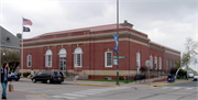 THIS ONE-STORY, STEEL-FRAMED BUILDING HAS ITS FOUNDATION, WALLS, PIERS, AND FLOORS CONSTRUCTED OF REINFORCED CONCRETETE. THE FOUNDATION IS FACED WITH WHITE STONE AND THE EXTERIOR WALLS ARE COVERED WITH DARK, RED SANDSTRUCK BRICK LAID IN RUNNING AMERICAN BOND. LIMESTONE IS USED AS A BELTCOURSE, IN THE CORNICE, FOR THE WINDOW SILLS, KEYSTONES, AND OTHER MINOR DECORATIVE ELEMENTS IN THE FACADE. THE HIPPED SECTION OF THE ROOF OVER THE FRONT OF THE BUILDING IS COVERED WITH STANDING SEAM METAL (TIN), WHILE THE REAR PART IS FLAT AND OF COMPOSITION CONSTRUCTION.