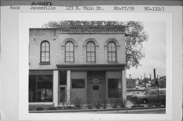 Additional Information: | This two story building features a rectangular shaped plan configuration, a brick exterior, a brick and wood trim, and a flat roof. Round arched windows with distinctive brick hoods are visible on the second story. Brickwork detailing appears on the cornice. The building, which was owned by Arthur Koutsky of Ontario, Canada in 1982, was occupied by Midwest Prosthetic & Orthotic Center. The building is in good condition. Koutsky also owned at that time the building at 119-121 North Main Street. |