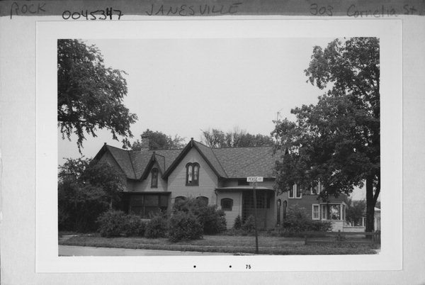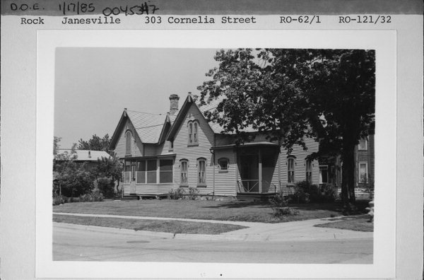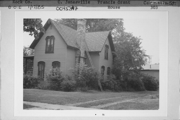Additional Information: | A 'site file' exists for this property. It contains additional information such as correspondence, newspaper clippings, or historical information. It is a public record and may be viewed in person at the Wisconsin Historical Society, State Historic Preservation Office. This fine Gothic Revival house is a frame building with two stories and a steeply pitched roofline. Projecting from the roof are both gable projections and gable peaks. Finials decorate all gable peaks. The tall, narrow windows of the house are generally of two types. Wider windows of the first floor are decorated with label moldings. Windows on the upper story are generally paired with round arch decorations. There are several smaller windows punctuating the facades of the house. They are trimmed with label or other moldings. A small front porch covers the front entrance which consists of a plain wood and glass door and label molding. The side entrance has a larger porch with simple posts, delicate brackets, and a decorated frieze. A two-story carriage house with plain board siding accompanies the site. Both the house and carriage house are in very good condition. This house is a fine example of the Gothic Revival style of architecture. Its steeply pitched roof with multiple gable projections and peaks, round-arched windows and windows with label moldings are typical elements of the style. The house and its matching carriage house has a high level of integrity. This house is probably the finest Gothic Revival house in Janesville. Additional research in tax rolls or deeds is necessary for an exact date of construction and original owner of this house. However, its most well-known occupant was Francis Grant, a court reporter, who with his wife Harriet, lived in the house from the 1880s until the mid-twentieth century. It is possible that further investigation into this property will uncover an individual of historical significance who built and/or lived in this house in the mid-nineteenth century. |