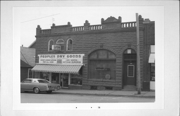 | Additional Information: | A 'site file' exists for this property. It contains additional information such as correspondence, newspaper clippings, or historical information. It is a public record and may be viewed in person at the Wisconsin Historical Society, State Historic Preservation Office. A TWO-STORY COMMERCIAL BLOCK OF HEAVY STONE CONSTRUCTION. THE LEFT SIDE OF THE BUILDING--THE MILLER BUILDING--HAS AN ALTERED STOREFRONT AND A SET OF THREE, ROUNDED-ARCH WINDOWS ABOVE. A BALLUSTRADED PARAPET WITH THE NAME OF THE BUILDING APPEARS ALONG THE ROOF-LINE. THE RIGHT PORTION OF THE BUILDING HAS A LARGE, SEGMENTALLY-ARCHED WINDOW (WITH LEADED GLASS) AND A DOOR SET INTO A SIMILARLY ARCHED, YET NARROWER, DOORWAY. BOTH THIS DOOR AND THE WINDOW HAVE PROMINENT KEYSTONES. THE PARAPET HERE HAS "BANK" INSCRIBED ON IT, AS WELL AS THE DATE OF CONSTRUCTION. FEATURES ELEMENTS OF RICHARDSONIAN/BEAUX ARTS. |
