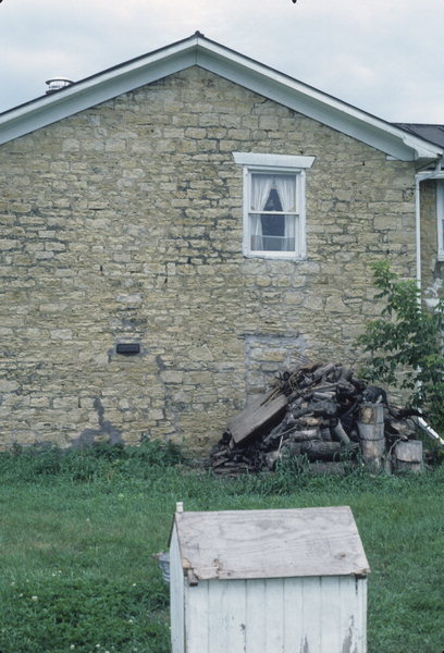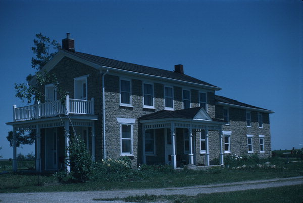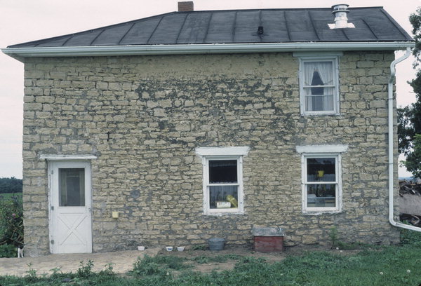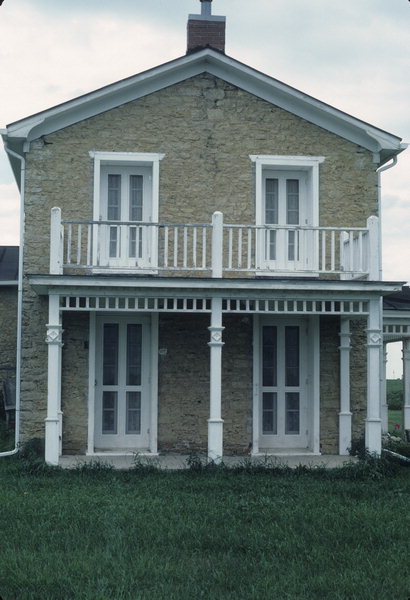 The original structure was an I-house, a folk style found primarily in the South (see IA3). This one, strictly symmetrical, has spare detailing--flat stone lintels over the first-story windows and a simple frieze and cornice. Sometime in the 1850s, the Gratiot family added a second story to the house's east wing and appended a second two-story block with a hipped roof.