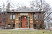 THis one-story red brick school building has a square from and raised basement. The hip roof has wide overhanging eaves whith brackets. Windows are paired single lights with modern glasing, flat arches, and stone sills. The projecting entry pavilion features a stone plaque and two stone madallions which read "Holstein School" and "19" and "30" respectivly. The entrance has double doors that are modern replacements for the originals. They are topped with an awning and decorated with brick surround with stone ornaments. A brick beltcourse that is decorated with stone tabs separartes the first floor and raised basement. A small one-story addition projects from one side of the building.