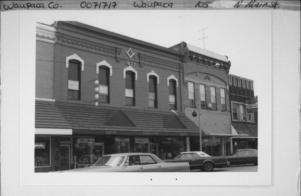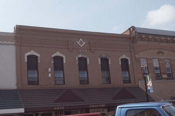 Additional Information: | The Masonic Block is a two-story brick building with Italianate details. It features a pressed metal cornice decorated with dentils and brackets. Under the cornice is brick corbeling that suggests brackets. In the center of the brick cornice is a Masonic symbol and the date 1877. Stone label moldings decorate the second story openings, which are partially enclosed with wood and single light sashes. The storefront has been modernized. The Masonic Block is a good example of the Italianate commercial style. The building is also historically significant and contributes to the district for its association with the historic Masonic fraternal group in Waupaca. The Masons were one of the most important of the historic fraternal groups in the city, and the impressive hall was a prominant landmark in the city's downtown for much of its history. |
