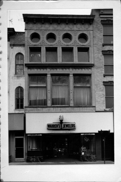 | Additional Information: | This building was built around 1867 for Theodore Racek a prominent pioneer who had a store here until around 1880. After that time, the building housed several retail businesses. Then, around 1910, it became the W.D. Sproesser Jewelry store, operated by W.D.'s son, William Sproesser. W.D. Sproesser was a German immigrant who established this successful business in the mid-nineteenth century. Later, his son William took over the business, along with his other prominent business activities. The W.D. Sproesser store was located in several places in the downtown, but it was here between 1911 and at least 1930. Sproesser was also a successful businessman outside of retailing. He had business interests in other concerns including the Globe Milling Company and the Merchants Bank. This building is significant for local history under National register criterion A because it was the long-time early twentieth century location of the W.D. Sproesser Jewelry store. Sproesser was one of several jewelry stores that operated for a long period of time in Watertown. Although probably not as important as either Salick or Wiggenhorn jewelry stores, Sproesser's was an important business and William a businessman who invested in other businesses promoting the local economy beyond downton. Because of Sproesser's location in this building, it is significant for local commercial history. The building also contributes to the overall development of commerce in the Main Street Commercial Historic District because the building housed a number of retail businesses between 1867 and 1930. Originally built as a two-story cream brick three-bay building for Theodore Racek around 1867, this building was remodeled to its present "Sullivanesque" appearance by the descendents of Theodore Racek between 1890 and 1895. Crowned by a wide metal bracketed projecting cornice and a frieze ornamented by a row of raised classical wreath designs pressed into the metal. Further divided horizontally and ornamented, the attic story is lighted by four cylindrical windows surrounded by low-relief sculptural ornamentation of classical foliage placed above a band of simple rectangular half-windows. A plain projecting cornice and frieze ornamented by a classical influenced design of seashells decorates the top of three large second story window sseparated by decorative "pilaster mullions." Tall round arched windows are located on the upper story of the rear elevation. This late 19th century influenced by the Neo-classical designs in a Sullivanesque manner was altered by the addition of the remodeled contemporary storefront. The Racek building is significant under criterion C as an unusual example of eclectic late 19th century architecture. Exhibiting a bracketed projecting Italianate styled cornice as well as classical stylistic details such as wreaths, seashells and stylized applied pilasters in low relief on the surface of the facade in the manner of Louis Sullivan, the Racek building originally built around 1867 was remodeled to its present appearance in the late 19th century. Initially used by Theodore Racek as a produce store and as his residence, this building is the only building of its type in the commercial district and in the city as well. |