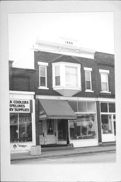 Additional Information: | This two-story Queen Anne commercial building was constructed in 1898. It is rectangular in plan with red brick walls and a flat roof; the building shares party walls on both sides. The front elevation faces north and is asymmetrical in plan due to an off-center entrance. The building’s storefront features a bank of shop windows with a wood-paneled bulkhead wall below and an iron lintel with regularly spaced rosettes. Two recessed glass and wood doors are located at the eastern end of the façade (one door provides access to the shop interior while the other provides access to the second-floor residential space); the doors are separated by a fluted iron column with narrower, matching columns on each side. A more ornate iron column serves to anchor the eastern corner of the shop window. A canvas awning spans the width of the storefront between the shop windows and iron lintel (this was added sometime after 1992). The second story contains a central three-sided oriel window (containing a picture window with single-pane transom in the center and 1-over-1 windows in each side) with single 1-over-1 windows on each side of the oriel. Both individual 1-over-1 window feature stone sills and lintels. An ornate metal cornice caps the façade and features heavy brackets, dentils, and a decorative rectangular center parapet bearing the building’s year of construction (1898). The Dowe Clothing Store was constructed in 1898 as the second home of Henry Dowe’s clothing store (Dowe had established his first store in 1875). The property was owned and operated by Henry Dowe until his death in 1916, following which Dowe’s son Harry took over the business until his retirement in 1956. At the time of Harry Dowe’s death in April of 1963, the local newspaper noted that the Dowe Clothing Store was “the only business here that never changed location or ownership.” The second floor of the building served as a millinery and corset shop operated by Mrs. R.W. Drowatsky from 1895 through the early twentieth century. In 1926, a train derailment caused considerable damage to the eastern corner of the rear elevation. From 1957 to 1971 the building served as the Vilas Johnson Shoe Store and as the Althoff Shoe Store from 1972 to 1989. In recent years, the building has held a travel agency, a florist shop, a cabinet shop, and a variety of hair and beauty salons. Sometime after 1992, the existing awning was added over the shop window, obscuring the transom windows. |